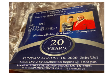 Pastoral Calling March 2000, Reverend Archie W. Thompson Sr. was called to pastor the St. Paul Missionary Baptist Church at 2516 Paul Quinn Street in Houston Texas, Acres Home. He arrived April 5, 2000 with his wife and 2 children. Also, he had a great determination, dedication, enthusiasm, and a vision for The St. Paul Baptist Church’s future. He came with a powerful theme, Using the Lord's Blueprint to Build the House PSALMS 127:1.